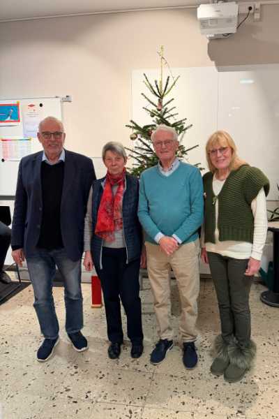 Der neu gewählte Präsident überreicht der neuen Geschäftsstellenleiterin symbolisch den Schlüssel der Geschäftsstelle. – Die Jubilare