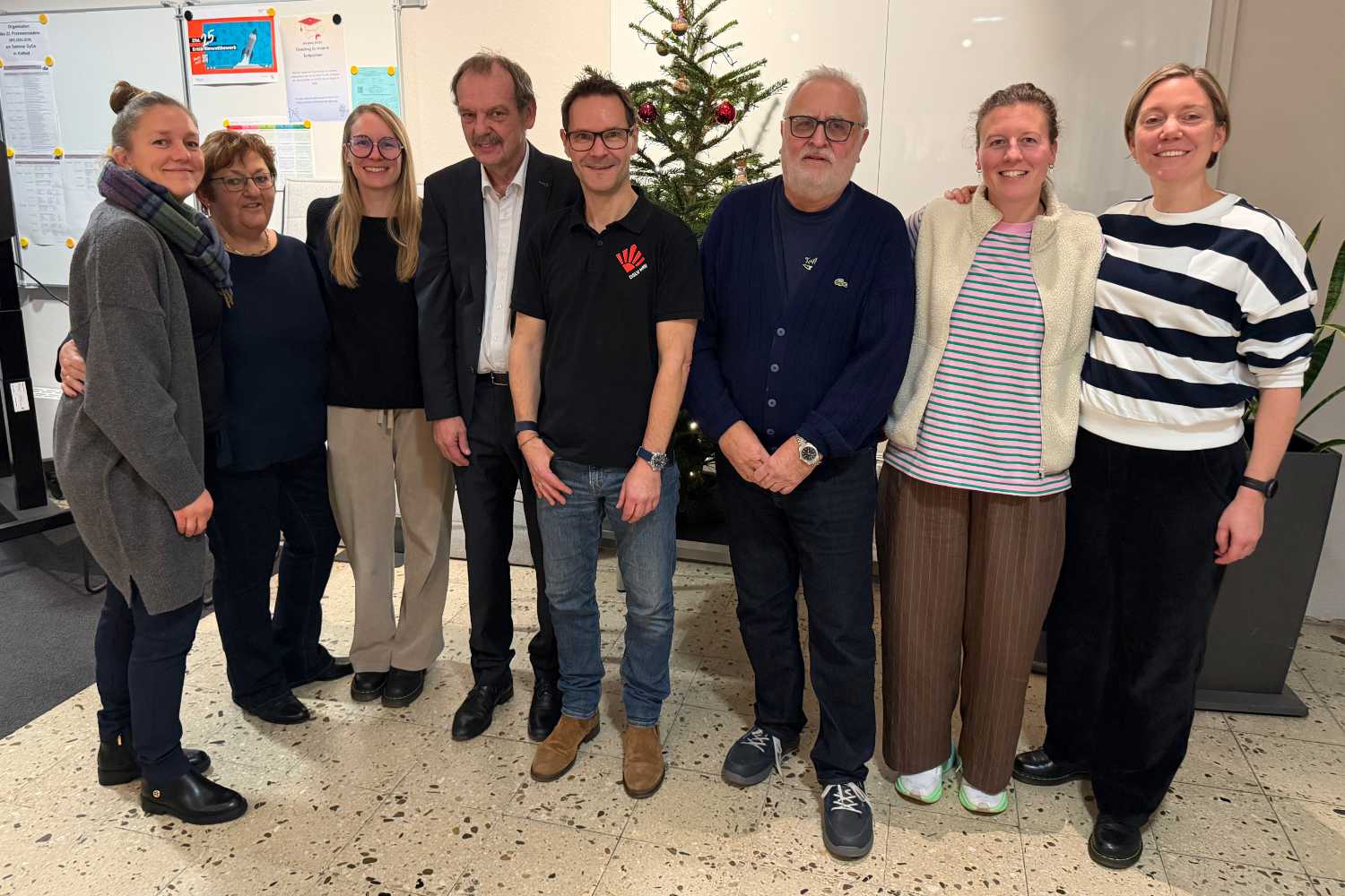 Der neu gewählte Vorstand, Britta Schröder, Martin Wonik, André Lengsfeld, Hartmut Rösler und Rosanna Leistikow mit der neuen Geschäftsstellenleiterin Melanie Schüten und Walburga Malina (v.l.) und Anne-Christin Roth (rechts) – Nicht im Bild Vorstandsmitglied Jana Bergmann